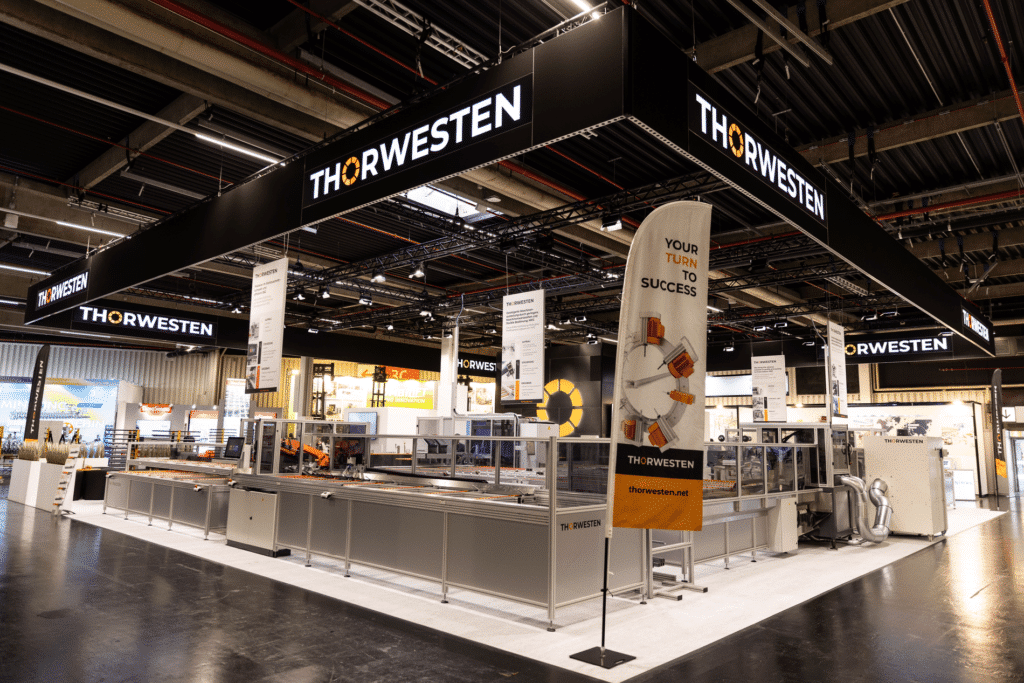 Verder presenteerde Thorwesten een nieuwe en verbeterde uitvoering van het staalzaagcentrum waardoor de snelheid van zagen verbeterd is. Dat geldt ook voor de stabiliteit van de zaag. “Dit heeft te maken met de Servo gestuurde zaagvoeding, deze is dus voor elk type profiel programmeerbaar. Deze kan stand alone staan of in combi met een zaagbewerkingscentrum worden geïnstalleerd. Het is mogelijk het Thorwesten CNC bewerkingscentrum uit te breiden met een robot voor het plaatsen en vastschroeven van de sluitplaten. Deze kan vervolgens geautomatiseerd afgestapeld worden .”