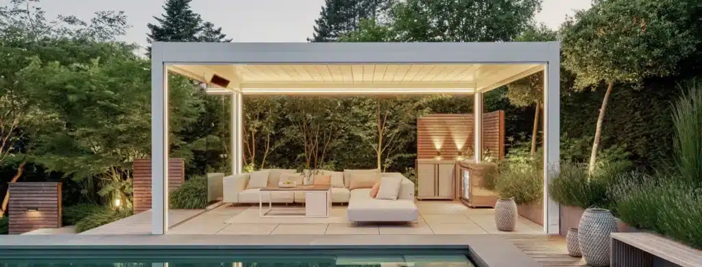 Die Nachfrage nach hochwertigen kubischen Terrassendächern mit beweglichen Aluminiumlamellen, einem beweglichen Sonnenschutz oder einer Glasfläche ist ungebrochen - vor allem im Premiumsegment. Gleichzeitig steigt auch die Nachfrage nach individuellen Ausstattungswünschen. Um diesen Ansprüchen gerecht zu werden, erweitert Warema das Zubehör- und Ausstattungsportfolio für die Lamaxa Dachsysteme um noch mehr Ausstattungsmöglichkeiten. Die vielseitigen Schieberahmen sorgen für noch mehr Gestaltungsvielfalt, Individualität und Komfort im Außenbereich.