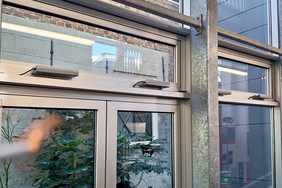 For a healthy indoor climate in educational institutions, good natural ventilation is essential. To guarantee optimum air quality in the monumental building of the University of Groningen, Teleflex BV of Tiel recently fitted twenty-two wide opening windows with electric window controls. “These are equipped with the ACK4s synchroonset, which makes the window openers move evenly and stably,” says operations manager Jesse Verheem.